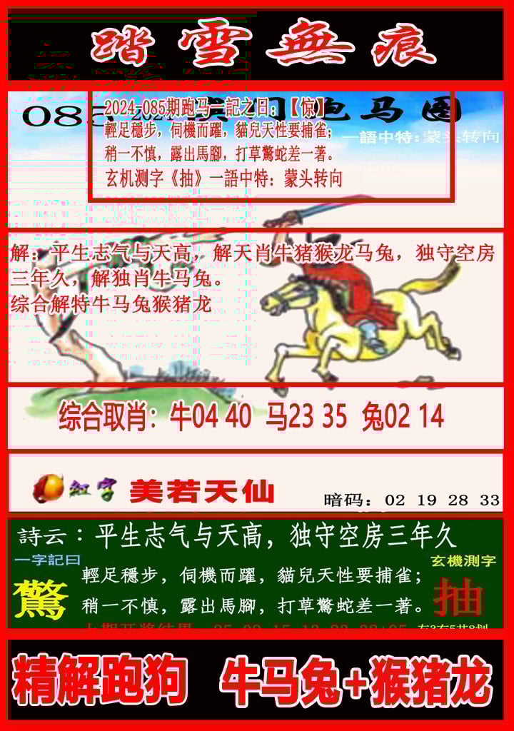 083期平猴→猴马(2连)→猴马兔(3连) |
