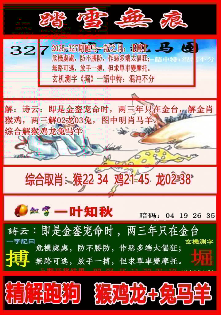 319期 今期鸡蛇兔出特,棘篱绕屋树交加开鸡45 |