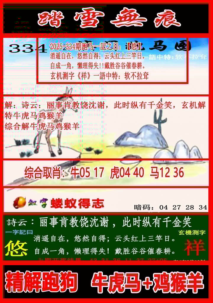 334期 今期马兔牛出特,枯木岩前月影斜开?00 |